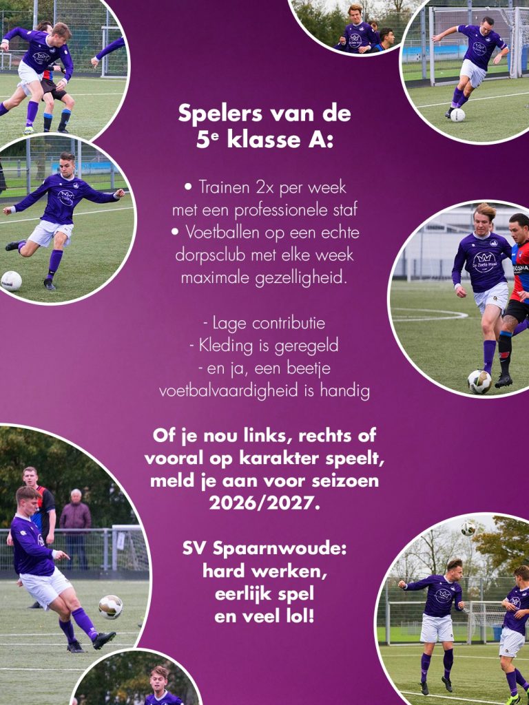 We zoeken spelers voor ons team in de 5e klasse A. Geen praatjes over selectie of prestatiedruk.